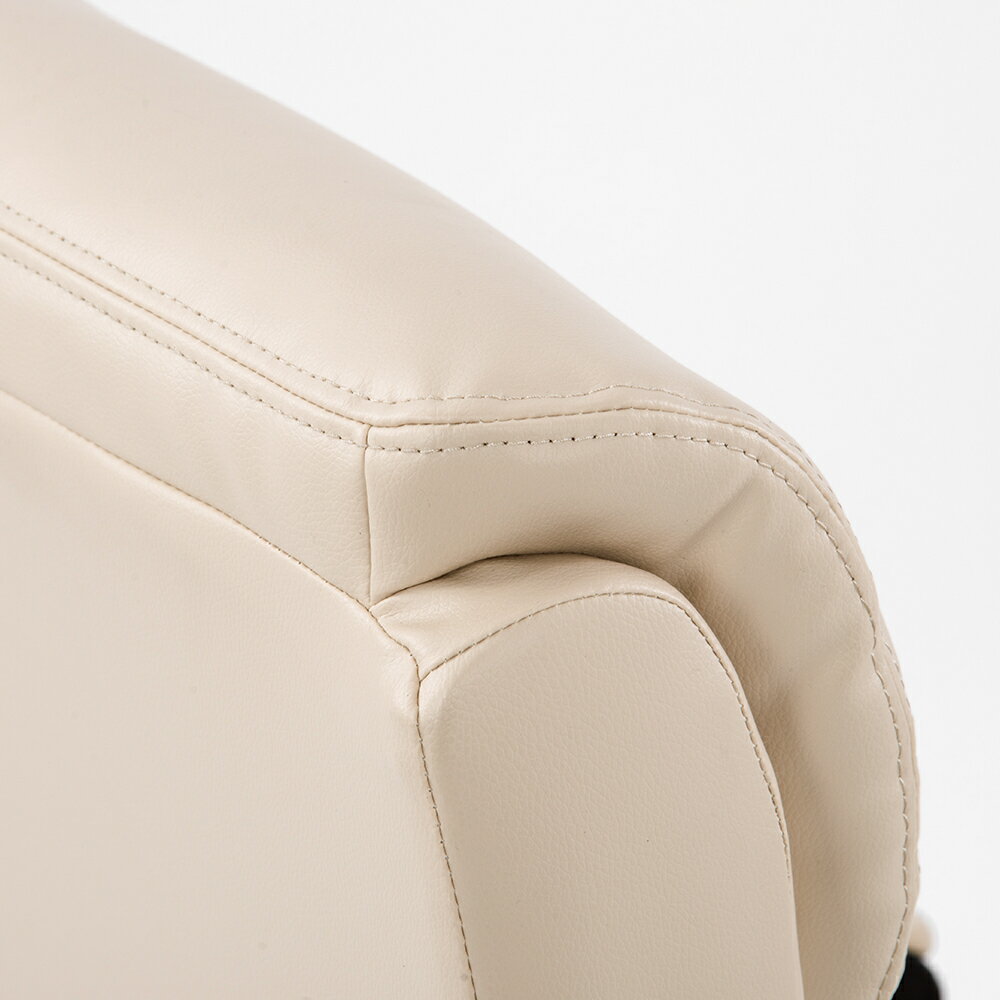 商品情報ブランドHEYA仕様商品サイズ:幅51(アーム含まない)×奥行49×高さ110-118cm(座面高(座面厚除く):38-46cm)重量:15.7kg 静止耐荷重:約100KG素材:張り地:プロ仕様 PU/ 座面内部:ウレタン / フレーム:スチール(クロームメッキ塗装仕上げ)/キャスター:ナイロンカラー:ブラック/アイボリー組立品/完成品:組立品商品説明1.【PU:お手入れがしやすいレザータイプ】なめらかな手触りPUレザーは高級感といい肌触りが兼ね備える上、水や汚れに強く、耐久性も優れて、お手入れも簡単です。