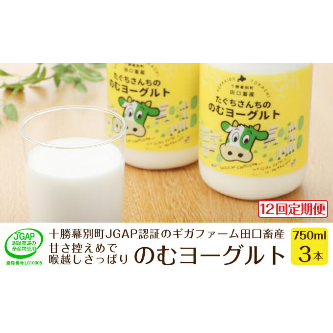 【ふるさと納税】[12回定期便]十勝幕別町産 無添加「のむヨーグルト」750g×3本[JGAP認証 田口畜産] 【定期便・乳飲料・ドリンク・乳製品・ヨーグルト・のむヨーグルト・無添加】