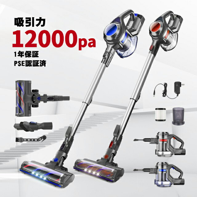 【時間限定18%OFF!】コードレス掃除機 12000Pa 120W PSE認証済 1年保証 伸縮型パイプ モード切替 LED付き コンパクト 掃除機 コードレス 掃除機コードレス サイクロン掃除機 サイクロン スティッククリーナー コードレスクリーナーMOOSOO x6