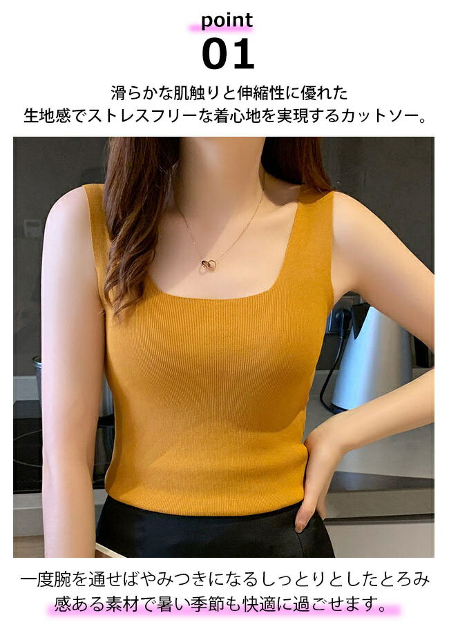 ▼商品名▼タンクトップ レディース▼商品詳細▼ 滑らかな肌触りと伸縮性に優れた生地感でストレスフリーな着心地を実現するカットソー。