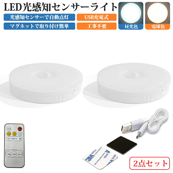 センサーライト フットライト 人感センサーライト 2個セット リモコン付 LED 屋内 室内 USB リチウム電池 足元ライト ナイトライト 人感センサー ライト 充電 階段 玄関 廊下 トイレ クローゼット 物置 工事不要 配線不要 自動点灯 消灯 光センサー マグネット 点灯モード付
