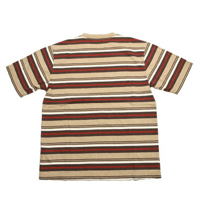 仕様、素材、色: 【商品名】春夏 マッキントッシュロンドン メンズ MACKINTOCH LONDON ボーダーTシャツ ブラウン系 先染マルチボーダー コットン100%/MACKINTOSH LONDON MEN MULTI BORDER T-SHIRT BROWN 【素材】コットン100% 【デザイン/仕様】先染マルチボーダーTシャツ、ベーシックデザイン 【カラー/パターン/品番】ブラウン系(ブラウン x ワイン x ホワイト x ベージュ)/マルチボーダー/品番:G1P68-512 【原産国/経由】中国/ 日本正規輸入代理店経由 バックスタイル 多色使いのボーダー柄なので、一見しただけで上質感が伝わります。