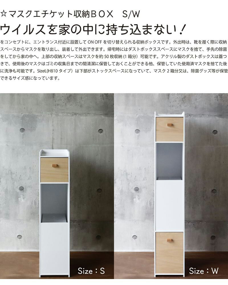 小物入れ 木製 マスク収納 サイズS 横145×奥230×縦600 ゴミ箱付き 除菌グッズ置き ダストボックス付き 引き出し 床置き【送料無料】