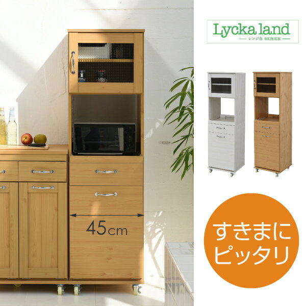 Lycka land 食器棚 コンパクト レンジ台 レンジラック ダストボックス ペール付 幅 45 キッチンラック ゴミ箱 分別 H156 キッチン 収納 すき間収納 棚 収納棚★沖縄・離島地域には送料の追加を頂きます。★☆代引きでのお取り扱いは御座いません。☆組立家具!