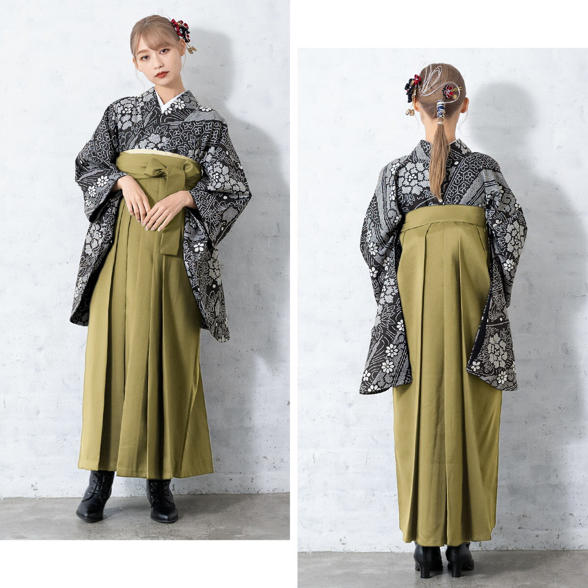 【予約】袴セット 卒業式 大人 大学生 レディース 女性 袴 小学生 黒 オリーブ 絞り調 牡丹 花亀甲 蝶 洗える ショート丈 袴4点セット 購入 販売 送料無料