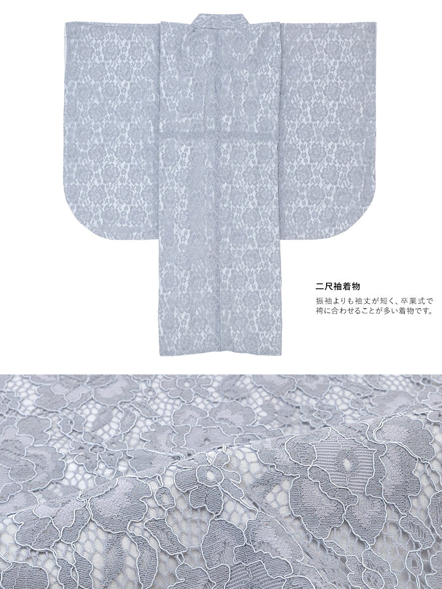 着物は、透け感のある花の文様のレース生地が優美なデザインです。