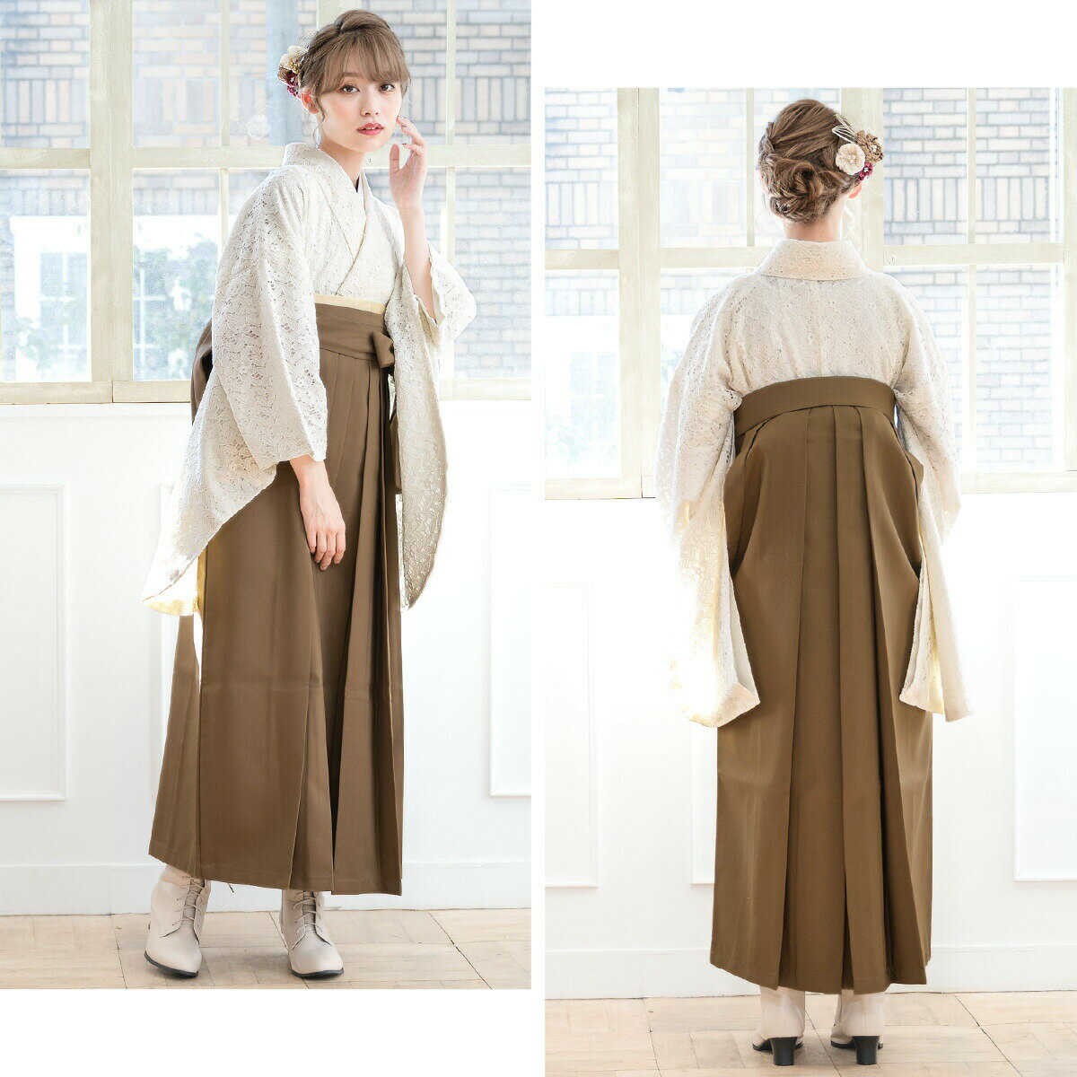 【予約】袴セット 卒業式 大人 大学生 レディース 女性 袴 小学生 レース ホワイト モカブラウン 花 洗える ショート丈 袴4点セット 購入 販売 送料無料