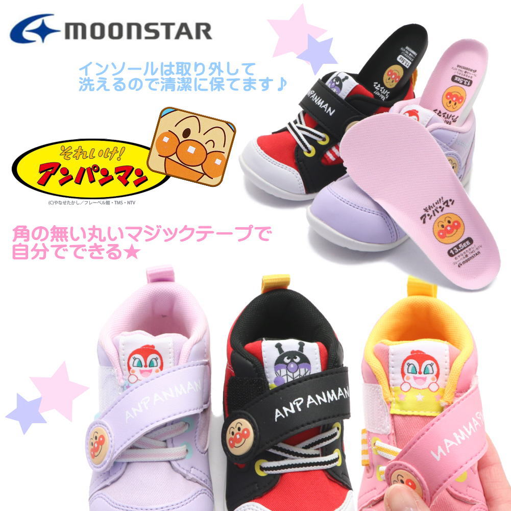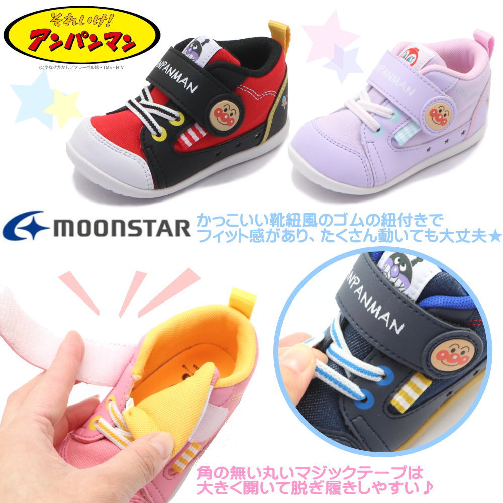ハーフサイズあり!12.0cm-14.5cm ムーンスター MoonStar アンパンマン ベビー キッズ 子供 スニーカー 運動靴 マジックベルト 通学 登園 APM B41