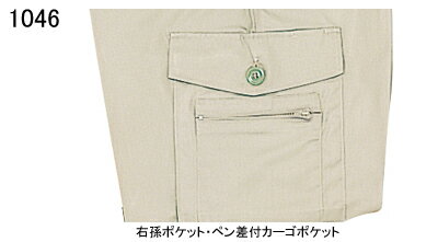 作業着 作業服 作業ズボン 自重堂 1046 製品制電ワンタックカーゴパンツ W91・スモークグリーン062