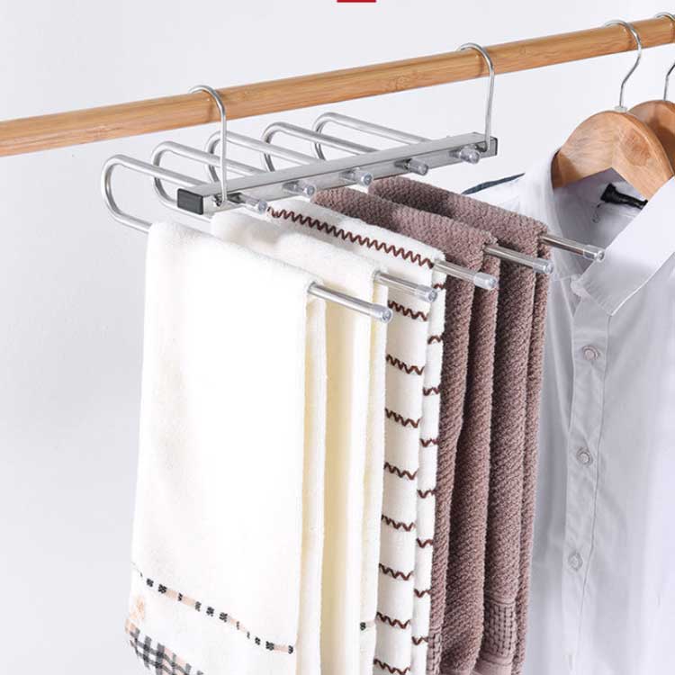 手前に引っ張るだけだから、取り出しがスムーズハンガー部分はステンレスを使用し重たい衣類でも変形しにくいです。