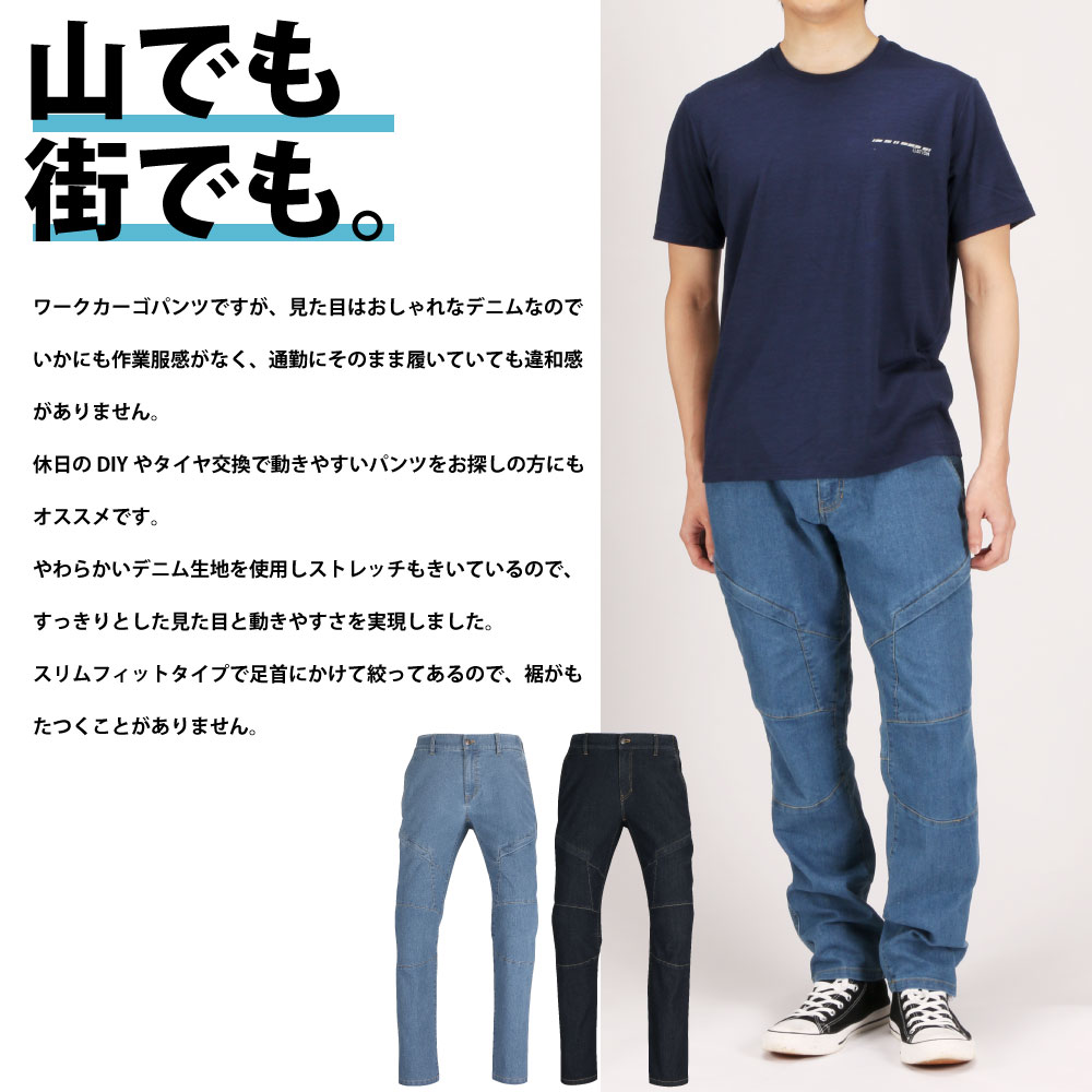 ストレッチデニムカーゴパンツ スリム ストレッチ デニム ジーンズ ジーパン 作業パンツ 作業ズボン 作業服 作業着 オールシーズン おしゃれ カジュアル アウトドア メンズ GEAR TREK AITOZ アイトス 580339