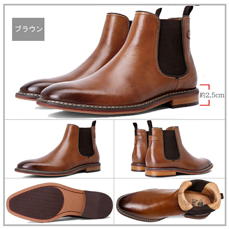 【送料無料】メンズ ブーツ フォーマル カジュアル ギフト 本革 ゴム底 木製底 衝撃吸収 男性 裏起毛 チェルシー 防寒 ビジネスシューズ サイドゴア アンクル 革靴 紳士靴 ドレス イタリア製天然牛革 ショット ブラック ブラウン 皮靴 結婚式 履きやすい 冠婚葬祭 スーツ