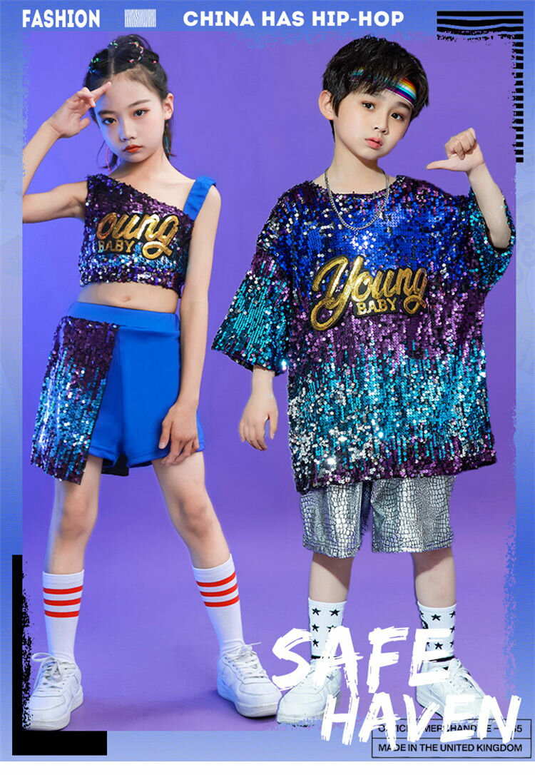 【2点セット】キッズダンス ダンス衣装 スパンコール セットアップ ヘソ出し 女の子 男の子トップス パンツセット 無袖 シャツ 半袖 ガールズ ヒップホップ 演出服 キッズ ダンスウェア ジュニア ダンス 衣装 キッズ jazz 110-180