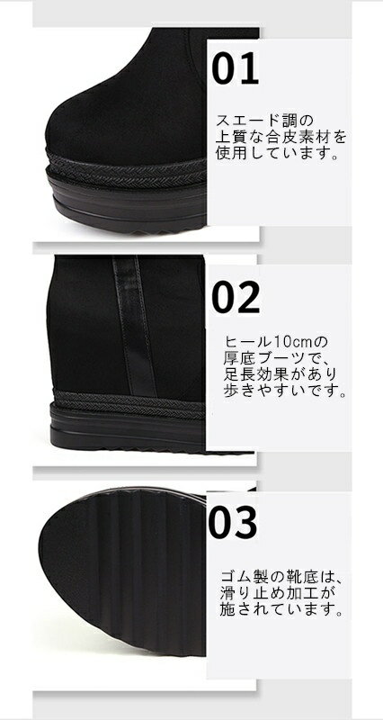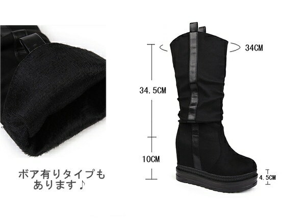 セット内容 .♔꙳∴ ブーツ「記載のないアクセサリー、小物等は付属しません」 素材 .♔꙳∴ スエード/ゴム カラー .♔꙳∴ ブラック サイズ (cm) .♔꙳∴ 22.0/22.5/23.0/23.5/24.0/24.5ヒール高さ:10cm ストーム:4.5cm 筒丈:34cm 裏地:ボア無し/ボア有り※表記寸法と実寸値の多少の誤差はご容赦ください。