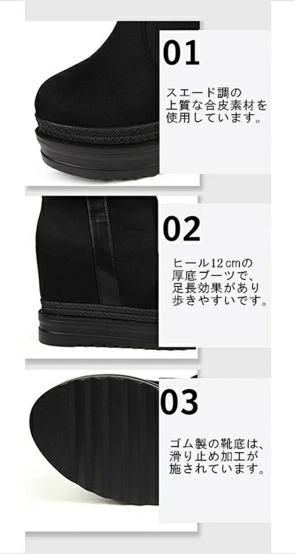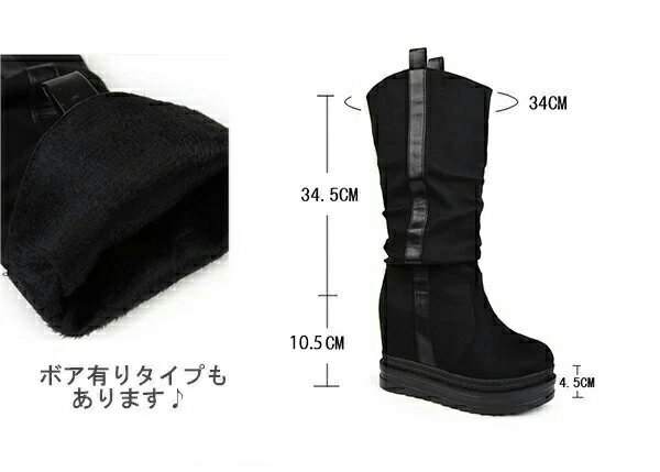 セット内容 .໒꒱* ブーツ「記載のないアクセサリー、小物等は付属しません」 素材 .໒꒱* スエード/ゴム カラー .໒꒱* ブラック サイズ (cm) .໒꒱* 22.0/22.5/23.0/23.5/24.0/24.5ヒール高さ:10cm ストーム:4.5cm 筒丈:34cm 裏地:ボア無し/ボア有り※表記寸法と実寸値の多少の誤差はご容赦ください。