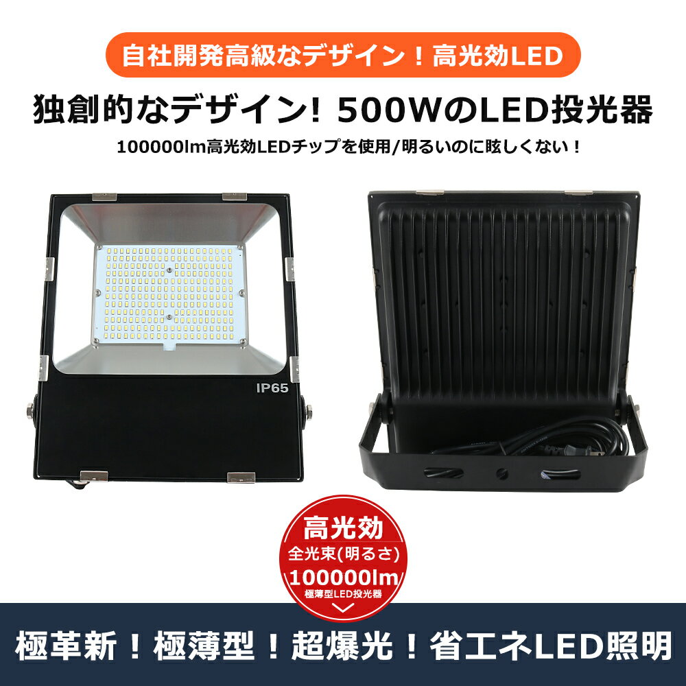 【送料無料】【20台セット】LED投光器 500W 5000W相当 超爆光100000lm 投光器 LED 屋外 IP65 防水 防塵 100V 200V 広角120度 ACコード付き LED投光器 作業灯 LED投光器 ワークライト LED作業灯 ハイパワー 極薄型 屋内 屋外 駐車場 工事現場 船舶 倉庫 工場 舞台 一年保証