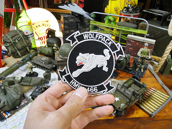 U.S.マリーン HMH-466 ウルフパックのミリタリーワッペン ■ こだわり派が夢中になる! アメリカ雑貨屋 アメリカン雑貨 おしゃれ アルファベット エンブレム アメ雑貨 アイロン 手芸 クラフト パッチ 人気 刺繍 接着 カッコイイ ミリタリーグッズ アップリケ
