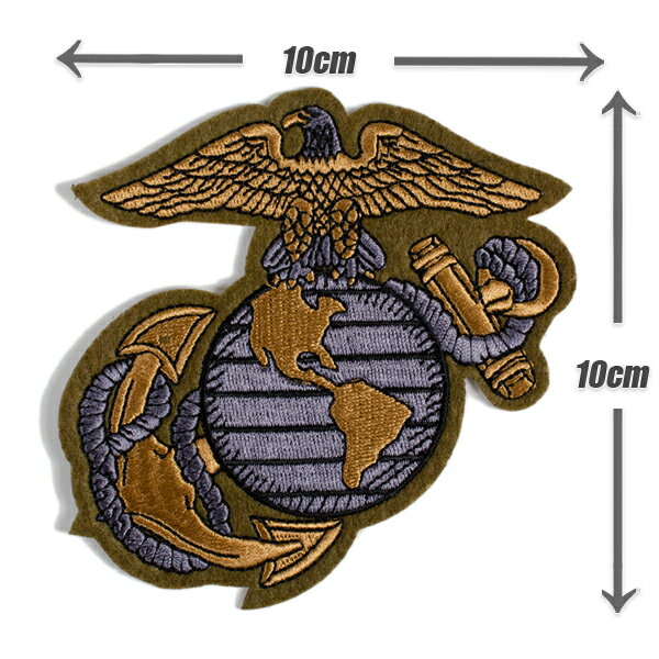 海兵隊 エンブレム 刺繍 パッチ 10cm×10cm 紋章 ■ 地球 アンカー ワッペン アップリケ ミリタリーパッチ アメリカン雑貨 小物 カスタム Marine Corp アメリカ軍 米軍