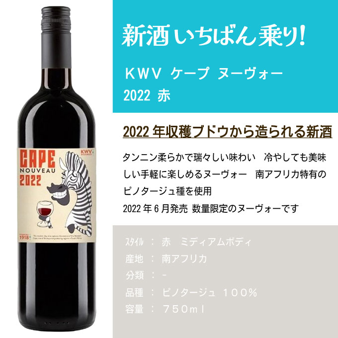 \2022年6月 新発売/ KWV ケープ ヌーヴォー 2022 赤 750ml | 南アフリカ 赤 ワイン ヌーヴォー 新酒 ピノタージュ
