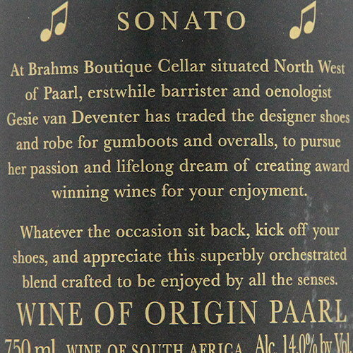 【2.2万円以上で送料無料】ブラハム ソナト 2019 Brahms Sonato 赤ワイン 南アフリカ パール
