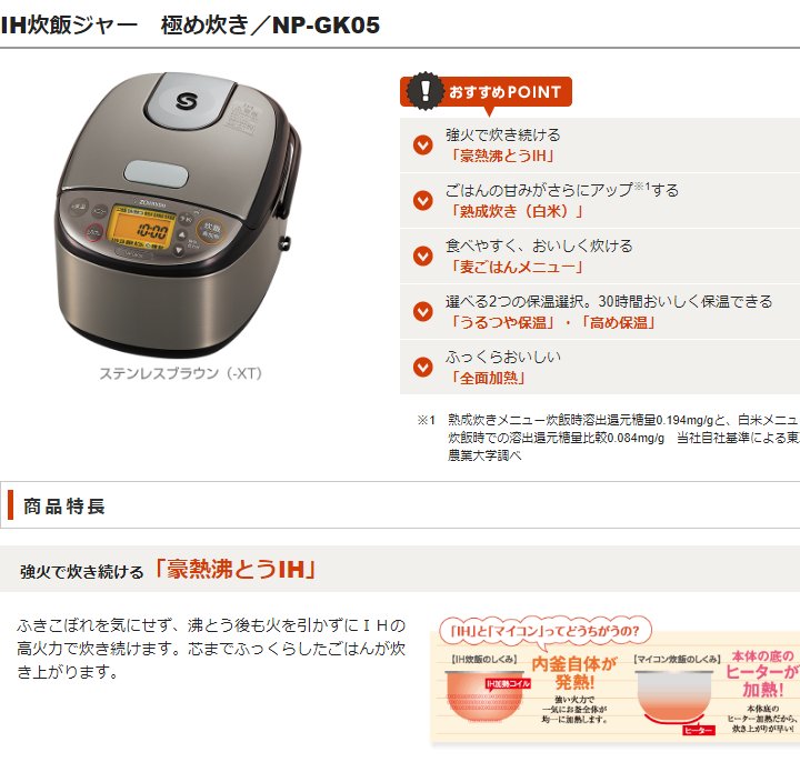 商品特徴 ◆強火で炊き続ける「豪熱沸とうIH」 ふきこぼれを気にせず、沸とう後も火を引かずにIHの高火力で炊き続けます。