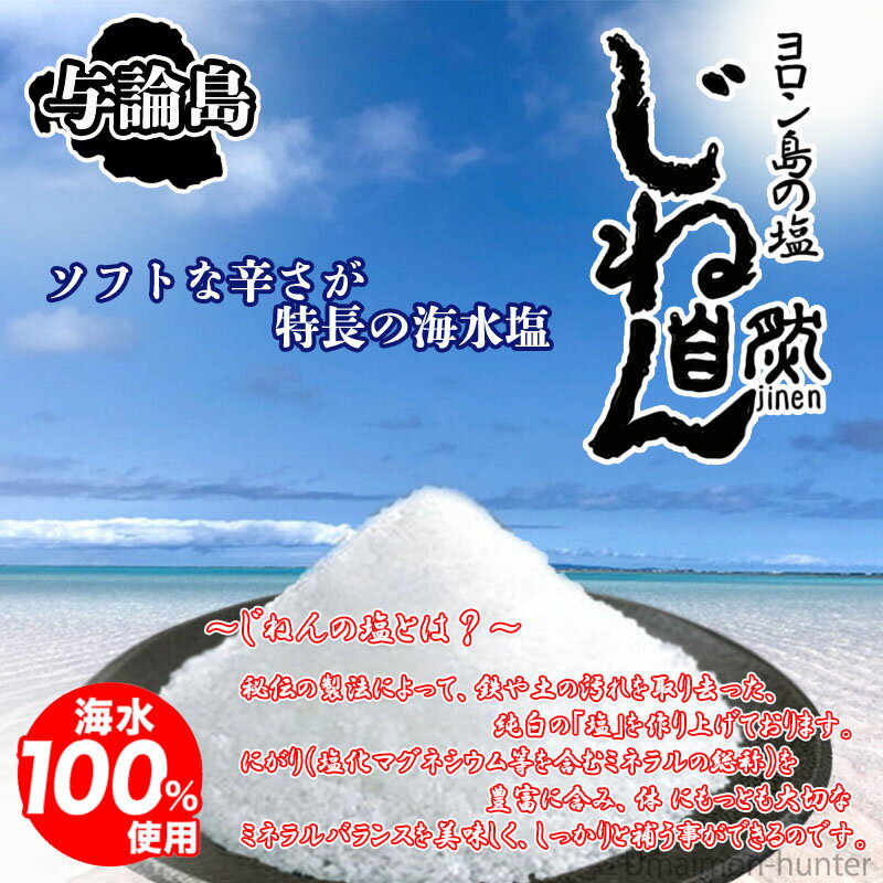 【じねんの塩とは?】与論島に古くから伝わる秘伝の製法によって、鉄や土の汚れを取り去った、純白の「塩」を作り上げております。