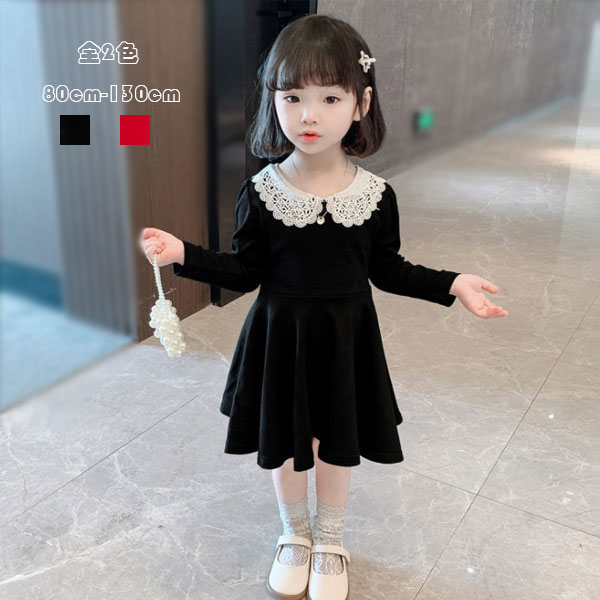 韓国子供服 ワンピース 綿 フォーマル 結婚式 パーティー 女の子 幼児 入園式 卒園式 入学式 発表会 長袖 ラペル おしゃれ 姉妹 演出 キッズ ベビー ワンピース レッド ブラック 春秋 80cm 90cm 100cm 110cm 120cm 130cm