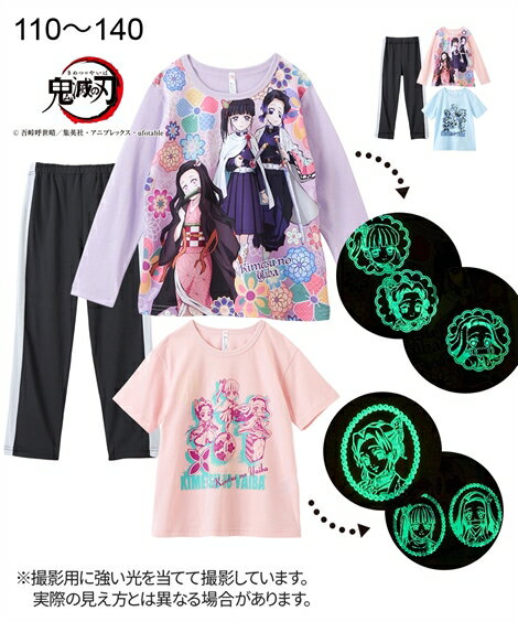 パジャマ キッズ 鬼滅の刃 光るトップス 男の子 女の子 子供服 パープル+ピンク+ブラック/ピンク+ブルー+ブラック 身長110/120/130/140cm ニッセン nissen