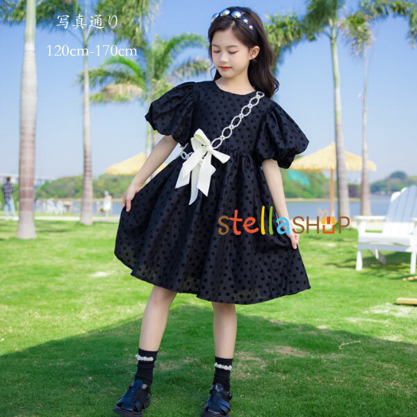 韓国子供服 夏服 新作 おしゃれ ワンピース ブラック 女の子 結婚式 ワンピース ビーズ飾り 蝶結び フォーマル ワンピース バブルスリーブ 誕生日 発表会 ワンピ キッズ ワンピース プレゼント お祝い 同窓会 演出 ワンピ 演奏会 音楽会 夏 可愛い 120 130 140 150 160 170