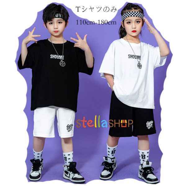 キッズ ダンス衣装 トップス Tシャツ ブラック ホワイト カジュアル hiphop K-pop ユニセックス ダンスウェア Tシャツ 女の子 男の子 舞台 団体服 子供用 ジャズダンス 普段着 体育祭 文化祭 学園祭 演出 ヒップホップ 運動 通学 半袖 110 120 130 140 150 160 170 180