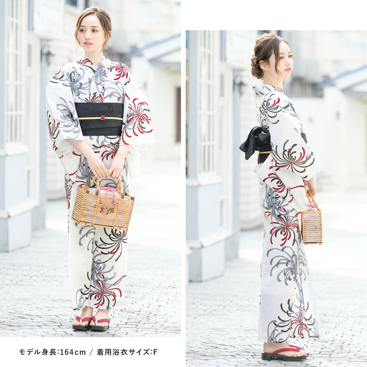 浴衣 セット レディース レトロ 作り帯 浴衣セット 大人 3点セット 白 ホワイト 黒 菊 花 綿 紅梅 ボヌールセゾン 夏 女性用 フリー 【送料無料】【あす楽対応】【浴衣 セット】
